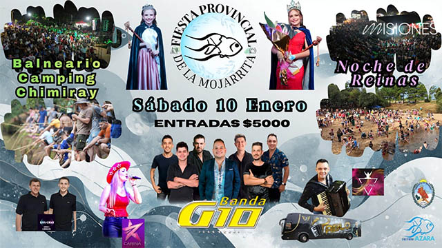 AGENCIAMISIONES.UNO | Azara se prepara para vivir del 9 al 11 de enero la XXI° Fiesta Provincial de la Mojarrita, un evento que combinará espectáculos, actividades recreativas y propuestas gastronómicas en el Balneario Camping Chimiray.