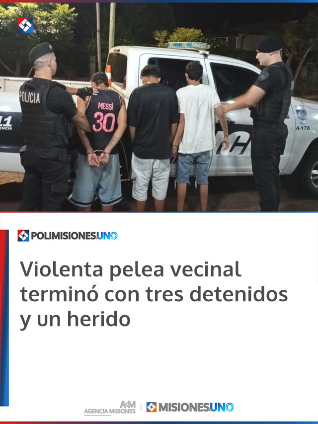 MISIONES.UNO – En el barrio Itatí de Apóstoles, una gresca entre vecinos obligó la intervención policial y derivó en la detención de tres hombres, además de un joven lesionado que debió recibir asistencia médica.